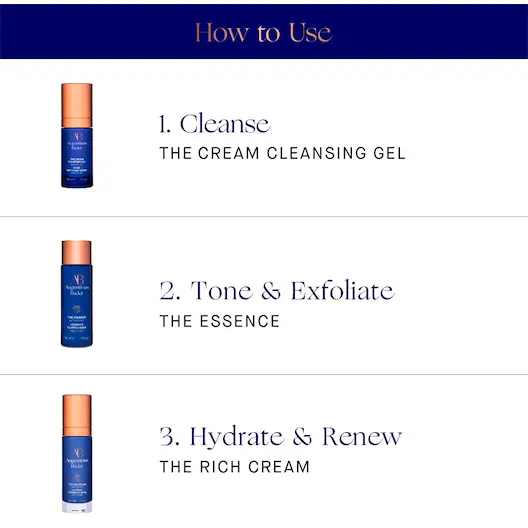 The Rich Cream: In aufwärts gerichteten Bewegungen auf die gereinigte Haut von Gesicht, Hals und Dekolleté auftragen.