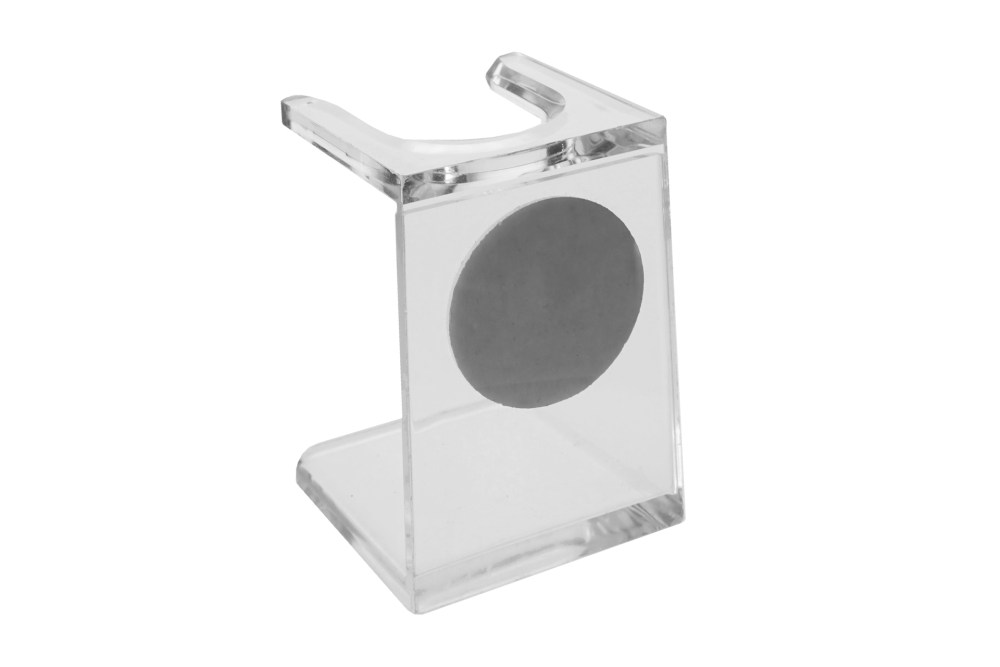 Rasierpinselhalter zur korrekten hängenden Aufbewahrung von Rasierpinseln nach Gebrauch. Ausführung in glashellem Kunststoff. Sehr robust. Zum aufstellen oder zur Wandbefestigung (bohren oder kleben; Klebepad ist am Halter bereits angebracht). Für alle gängigen Rasierpinsel.