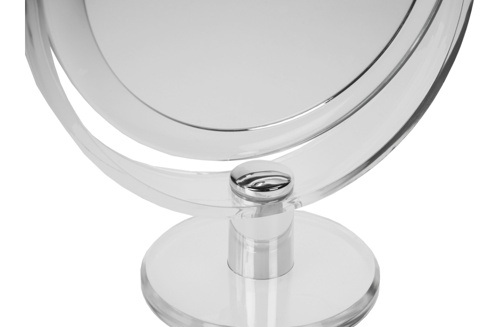 Doppelseitiger Make-up Spiegel mit 7-fach/1-fach Vergrösserung. Durch die 7-fache Vergrösserung werden Details Ihrer Haut, Rasur & Frisur sichtbar. Praktischer Tischspiegel stehend zum Schminken, Zupfen & Rasieren. Ein zweiseitiger, beweglicher Kosmetikspiegel aus Acryl und Metall. Der edle, kleine Stellspiegel für Ihren Schminktisch oder Ihr Bad. Ø 16 cm, Höhe: 22 cm