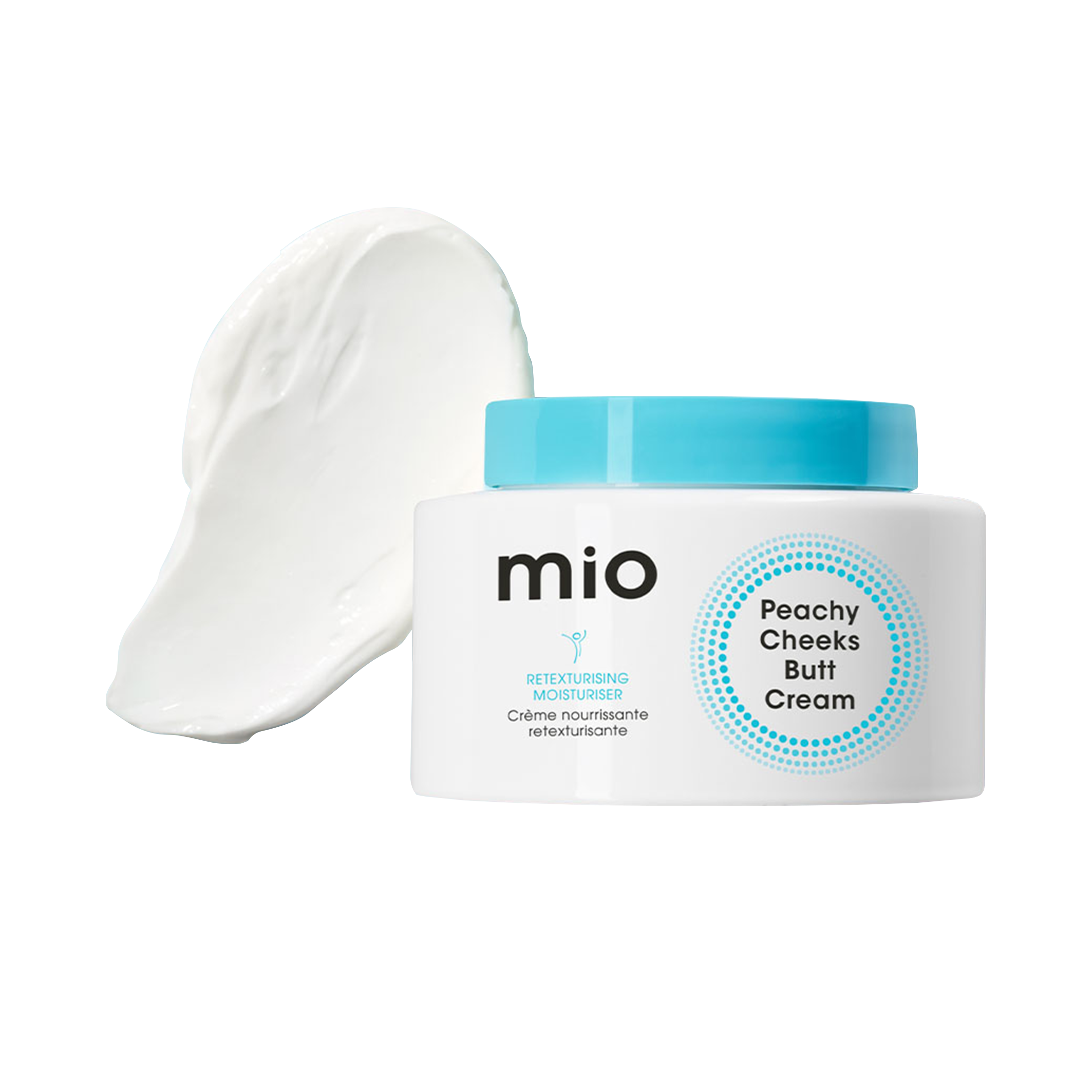 Feuchtigkeitspflege für eine verbesserte Textur für den Po Verbessere die Hautstruktur und Spannkraft deines Pos mit der innovativen Peachy Cheeks Po-Booster-Creme von Mio. Unsere klinisch erprobte* Peachy Cheeks Pocreme sorgt für ein glattes und straffes Hautgefühl für mehr Selbstbewusstsein. Mit ihrer Formel mit natürlich straffenden Eigenschaften und Antioxidantien peelt diese kraftvolle Po-Booster-Creme sanft und entfernt oberflächliche Hautzellen für einen Po, der sich geschmeidiger, neu strukturiert und elastischer anfühlt. 83 % stimmten zu, dass das Produkt auf der Haut ein elastischeres Gefühl hinterließ.*