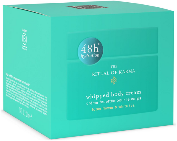 Verwöhnen Sie Ihre Haut mit dieser luxuriösen Körpercreme aus The Ritual of Karma, die Sie 48 Stunden mit Feuchtigkeit versorgt und mit Lotusblüte und weißem Tee angereichert ist. Die luftige Textur zieht schnell ein und lässt sich mühelos auftragen. Der Hydra-Boost Complex mit Aloe Vera, Squalan und Algen versorgt Ihre Haut intensiv mit Feuchtigkeit, lindert Trockenheit und stellt ihre Geschmeidigkeit wieder her. Perfekt zur Pflege trockener Haut – bewahrt den Feuchtigkeitsgehalt und schenkt ein spürbar erfrischtes Hautgefühl. Die Creme befindet sich in einem nachfüllbaren Glastiegel, den Sie immer wieder verwenden können. • Spendet 48 Stunden Feuchtigkeit • Mit einzigartigem Moisture-Lock Complex und reichhaltigen Ölen • Nicht fettendes, seidiges Finish • Zieht schnell in die Haut ein • Nachfüllbarer Glastiegel