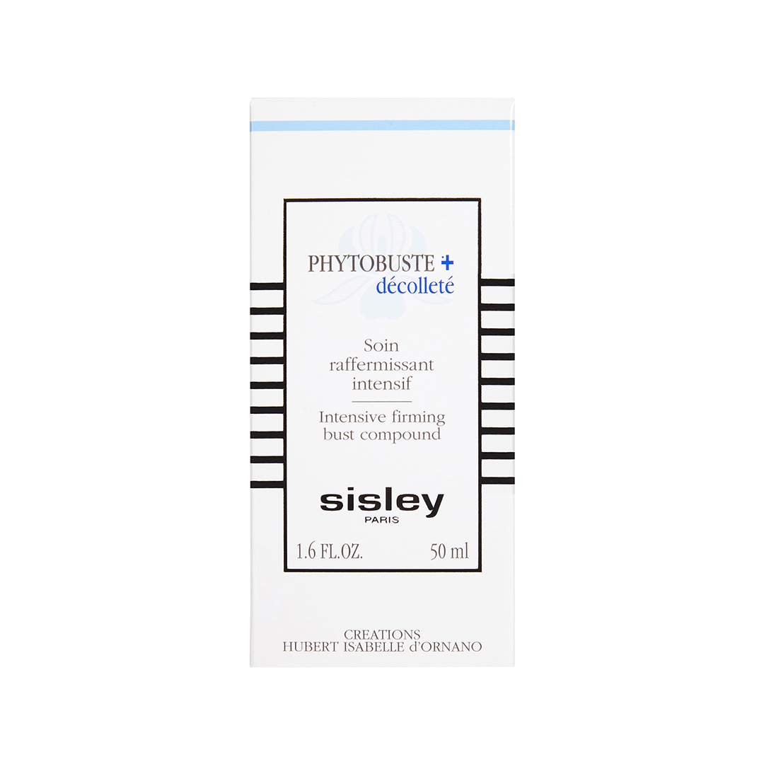 Phytobuste + décolleté die neue intensiv straffende Pflege, um die Schönheit und Jugendlichkeit von Büste und Dekolleté zu bewahren. Die Haut von Büste und Dekolleté ist ein sehr zarter und empfindlicher Bereich, der von den verschiedenen Lebensphasen der Frau stark betroffen ist. Mit zunehmendem Alter verliert die Dermis ihre Dichte und Struktur. Das so weniger gut gestützte Gewebe verliert an Spannkraft und Feuchtigkeit, die Haut des Dekolletés ist anfälliger für Knitterfalten. Um die Büste zu verschönern und das Dekolleté zu glätten, hat die SISLEY-Forschung die Pflege Phytobuste + dekolleté entwickelt, die drei Hauptwirkungen vereint: 1. Ein straffender Soforteffekt: Extrakt aus Haferkörnern glättet das Dekolleté und verleiht der Haut sofort mehr Spannkraft, die Büste fühlt sich innerhalb weniger Minuten glatter und straffer an. Die umhüllende Textur von Phytobuste + decolleté verstärkt diesen augenblicklichen Lifting-Effekt. 2. Eine langfristige festigende Wirkung, der neue festigende Phytokomplex auf Basis von Extrakten aus Centella asiatica und Walnuss trägt dazu bei, die Elastizität der Haut zu verbessern. Gleichzeitig optimiert das Roggenextrakt die mechanische Widerstandsfähigkeit der Dermis* gegen die Schwerkraft und verleiht der Haut Spannkraft und Festigkeit. 3. Versorgt mit Feuchtigkeit und Aufbaustoffen Karité-Butter, Sonnenblumenöl und Glycerin pflanzlichen Ursprungs spenden der Haut Feuchtigkeit, versorgen und verschönern sie. Die feine, leichte Textur ist ideal für eine sanfte Massage der Brust und vermittelt ein angenehm erfrischendes Gefühl beim Auftragen. Das Produkt zieht rasch ein und ermöglicht ein sofortiges Ankleiden. *In-vitro-Test an dem Aktivstoff.