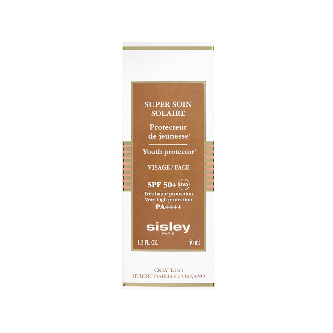 Die Sonnenpflege-Linie hilft, das Sonnenkapital der Haut zu bewahren und sie vor den schädlichen Auswirkungen der Sonne und den Folgen lichtbedingter Alterung zu schützen. "Super Soin Solaire Visage ein Sonnenpflegeprodukt, welches die Jugendlichkeit der Haut durch die Kombination aus zwei mineralischen Sonnenfiltern bewahrt*, die einen optimalen Schutz vor Sonnenbrand und lichtbedingter, durch Freie Radikale verursachter Hautalterung gewährleisten. – Wirkt antioxidativ und gegen Freie Radikale**: Die Formel enthält Vitamin-E-Acetat und Edelweiß-Extrakt, die der Haut dabei helfen, oxidativen Stress, Hauptursache für lichtbedingte Hautalterung, zu bekämpfen. – Schutz der Zell-DNA**: Mithilfe von Edelweiß-Extrakt tragen die Produkte dazu bei, die Unversehrtheit der Zell-DNA zu schützen, die für eine optimale Zellerneuerung von grundlegender Bedeutung ist. – Stärkung der Schutzfunktion der Haut: Edelweiß-Extrakt und Kamelienöl stärken die Barrierefunktion der Haut und helfen, ihr optimales Feuchtigkeitsniveau zu bewahren und sorgen für eine bessere Widerstandsfähigkeit gegen schädigende äußere Einflüsse. – Feuchtigkeitsversorgung, Pflege und Schutz: Um durch Sonneneinstrahlung verursachte Trockenheit und Feuchtigkeitsverluste auszugleichen, sind die Formeln mit Karité-Butter, Kamelienöl, Mango-Extrakt und pflanzlichen Glycerin angereichert, um die Haut schön und geschmeidig zu pflegen. Die feine und seidige Pflege ist so leicht, dass sie kaum spürbar ist, und so wasserfest, dass sie die Haut in allen Situationen wirksam schützt. Sie ist mit ätherischen Ölen von Salbei und Majoran natürlich parfümiert und besitzt den unverkennbaren Duft der SISLEY Sonnenpflege. *helfen, die Haut vor den Folgen lichtbedingter Alterung (Falten, Pigmentflecken, Feuchtigkeitsverlust, Erschlaffen der Haut) zu schützen. **in vitro test
